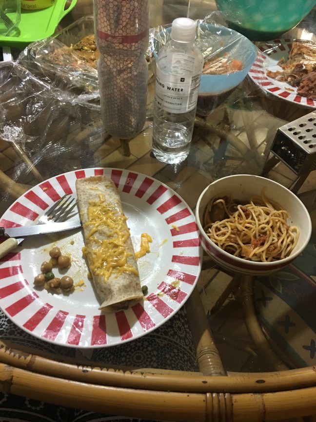 After our evening we take the 10 minute walk back to the house. I love that we always have the days meals and left overs spread out. We try really hard to not have wasted left overs.