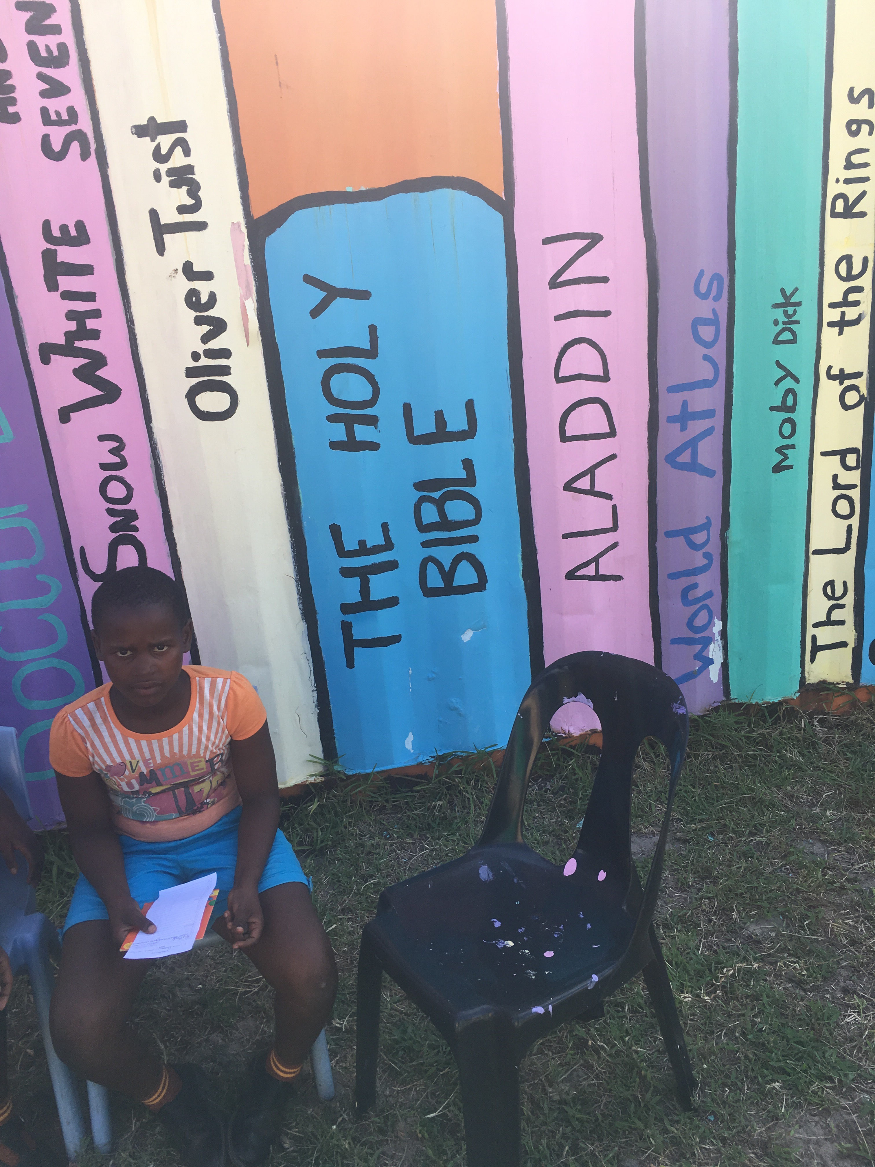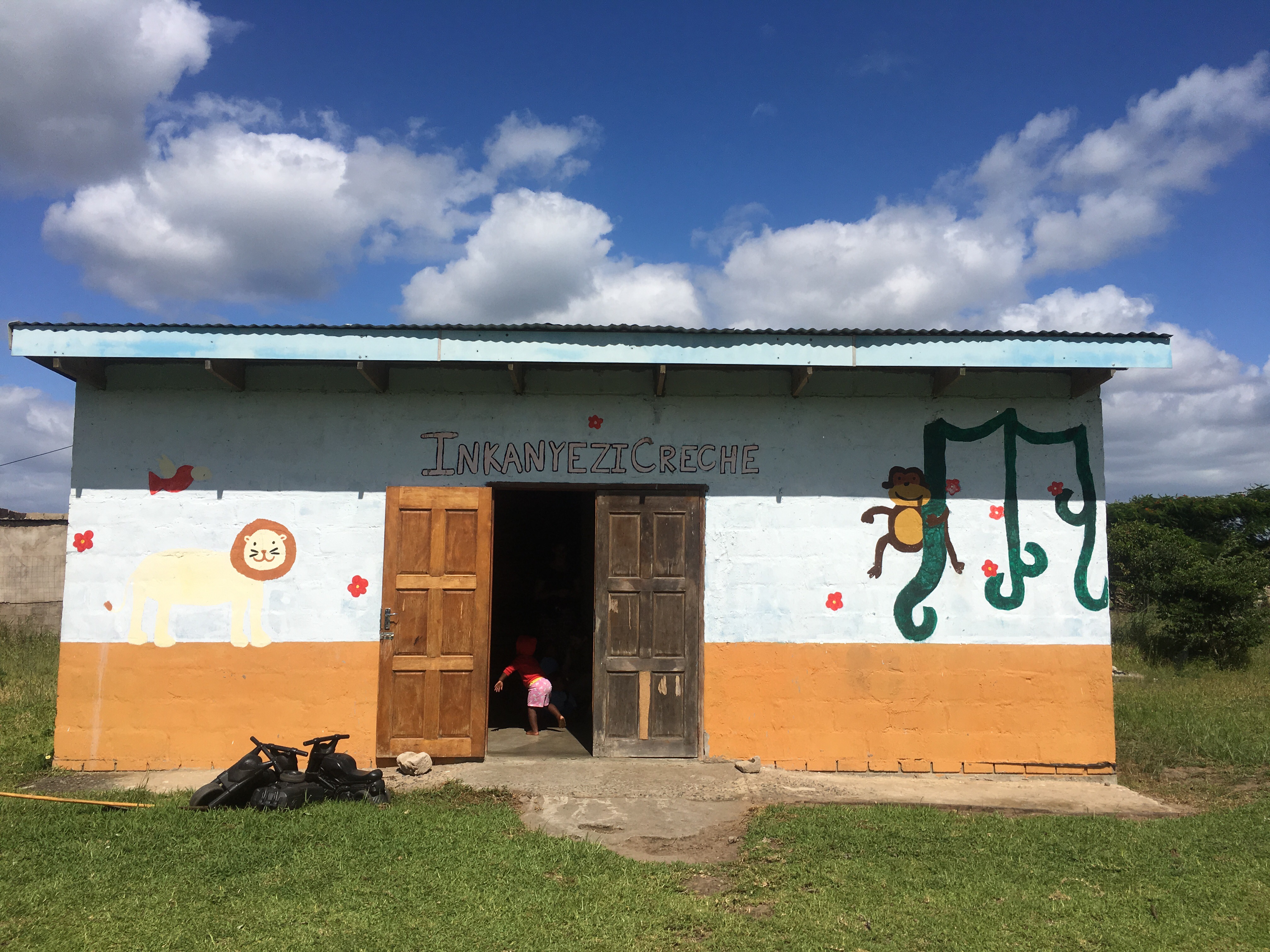 At 3:54pm we’re in the car and it’s time to pick the gals up from the Inkanyezi Crèche! They’ve painted numbers and letters on the colorful tires and I must admit, it looks really good. Mama G needs a ride so of course we give her one! She’s definitely a superstar with the kiddos in the community.