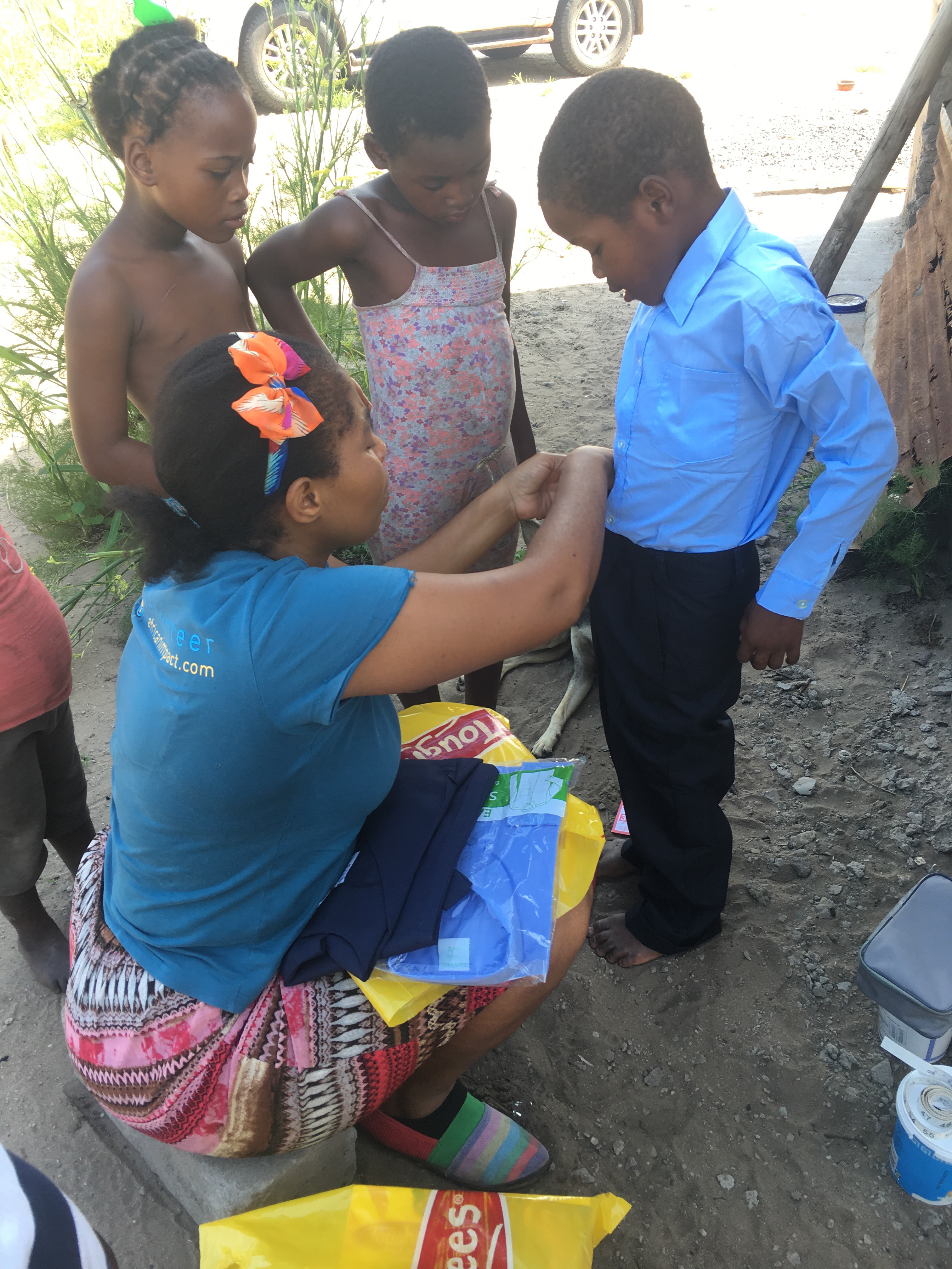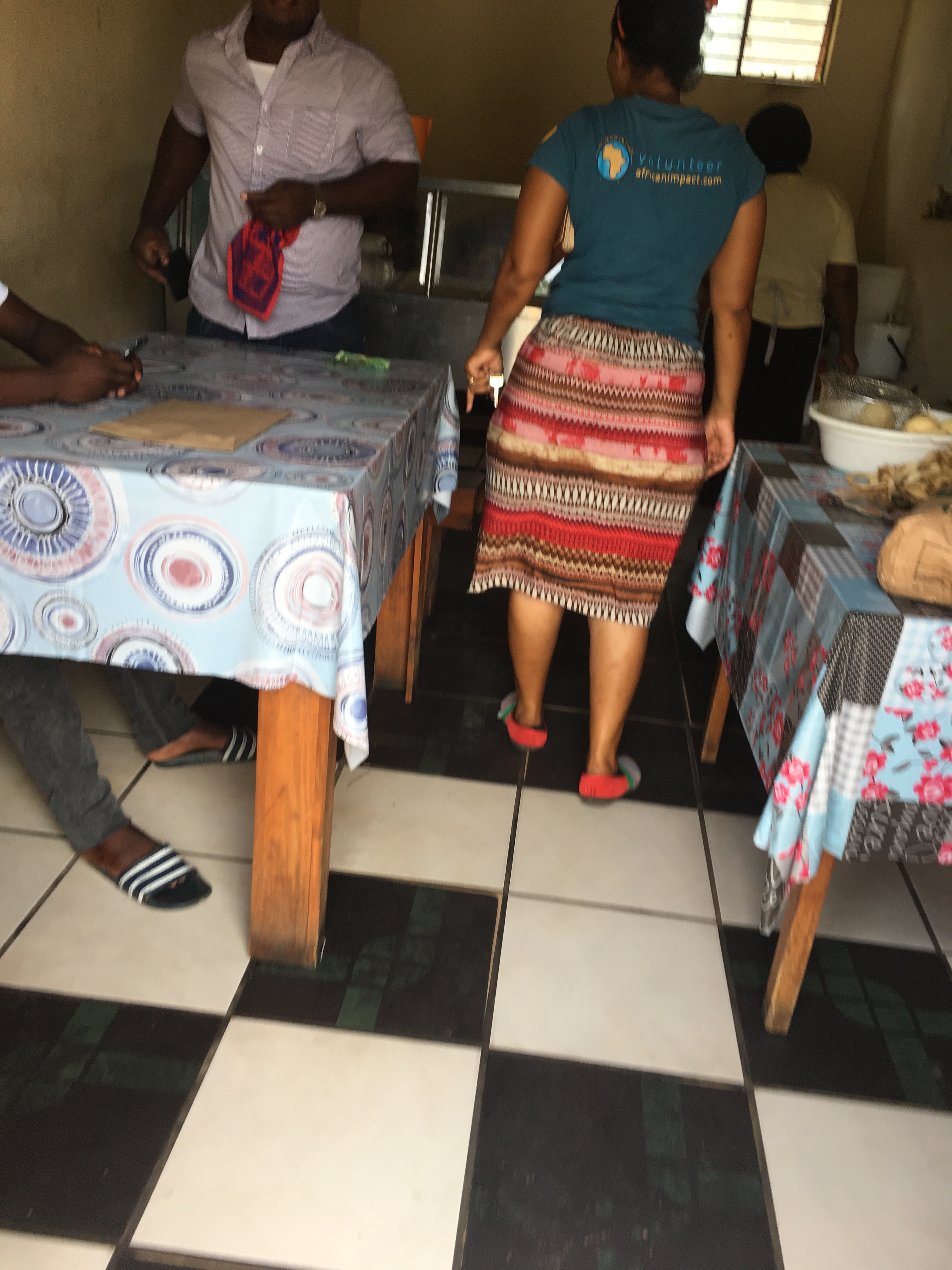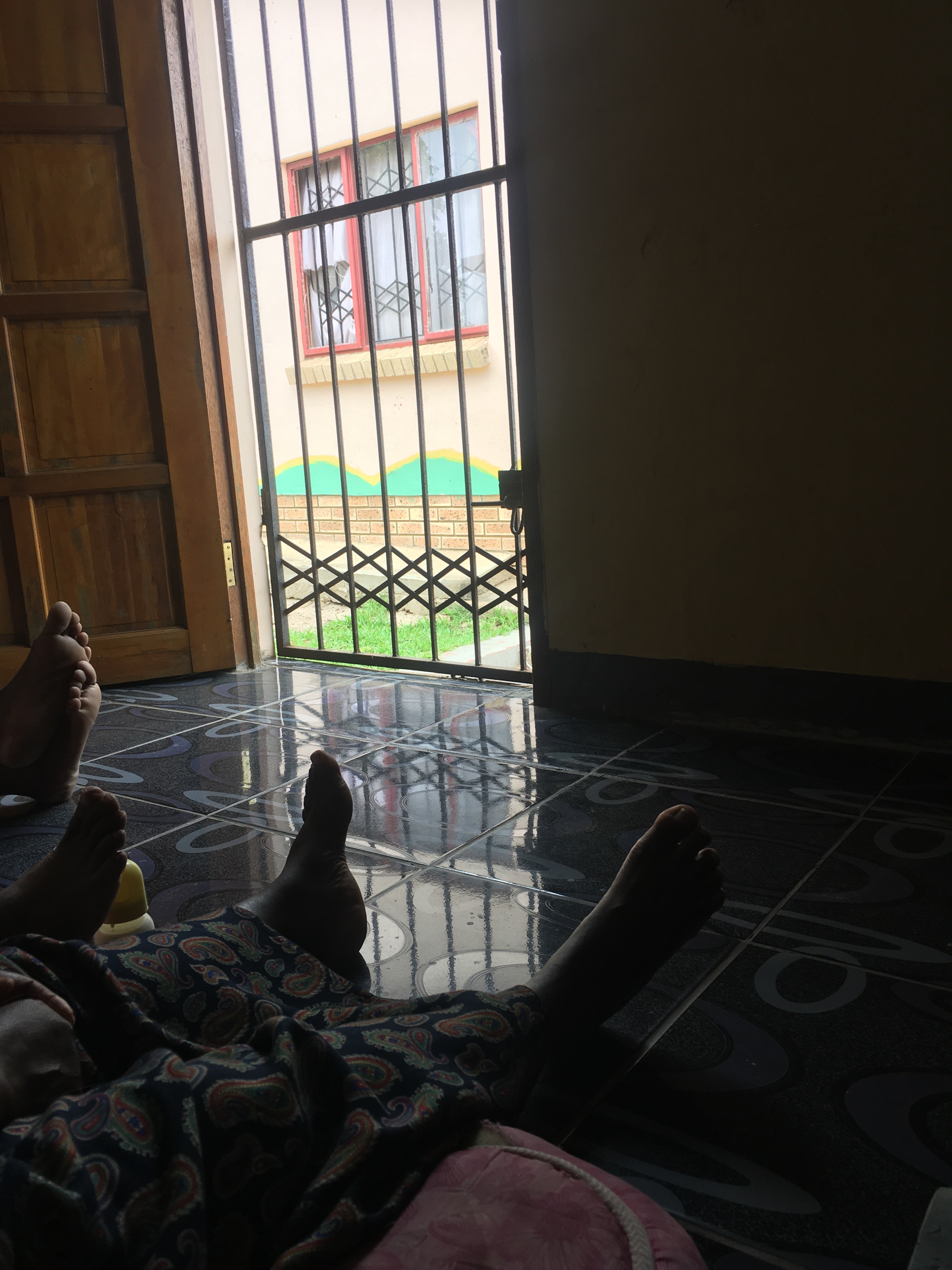 We finish with GoGo at 11:22am, since we have to pick the others up at 11:45am we quickly determine that there isn’t enough time to assist anyone else so we head to Crèche instead. We hand out there for about 20 minutes and then we leave for the house. It’s 11:55am and I am tired 😴 maybe I’ll get my nap today 🤔 as soon as I get to the house, I change my shirt and undershirt! I’m sweaty.