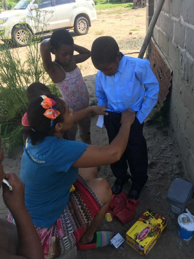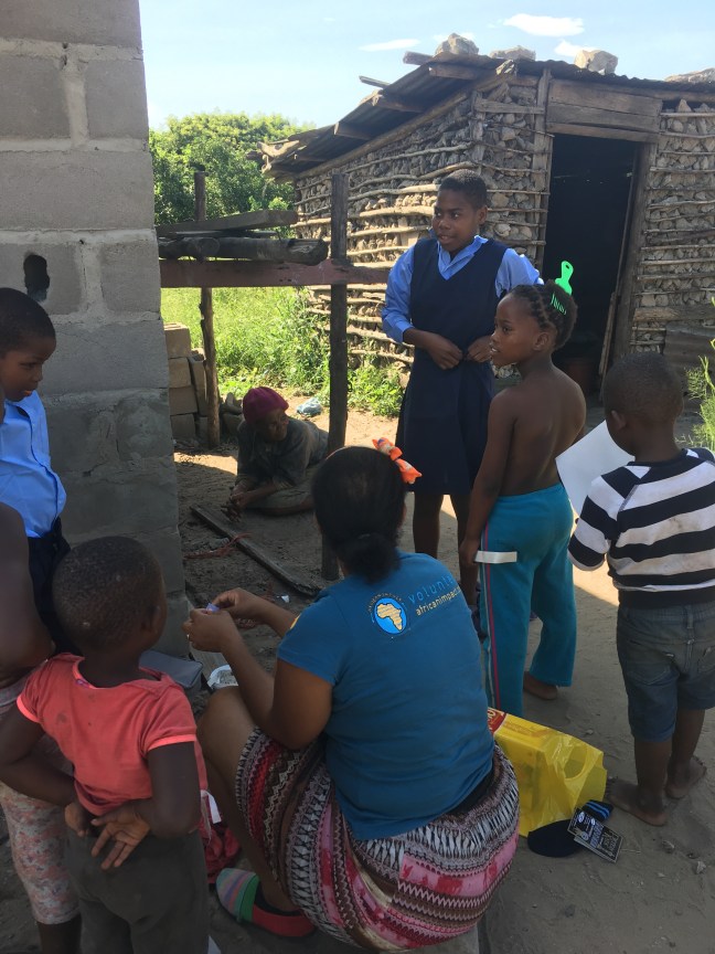 Breakfast was the same as yesterday-oats and plan yoghurt. Today is Home Assistance day. Claudy is with me again and I’m sure Shwele is greatful for her help because I sure am! We load up the two cars and at exactly 8:30am we leave for Khula to head to the family’s home. All of African Impact St Lucia make our way to show support to the family and I love it.