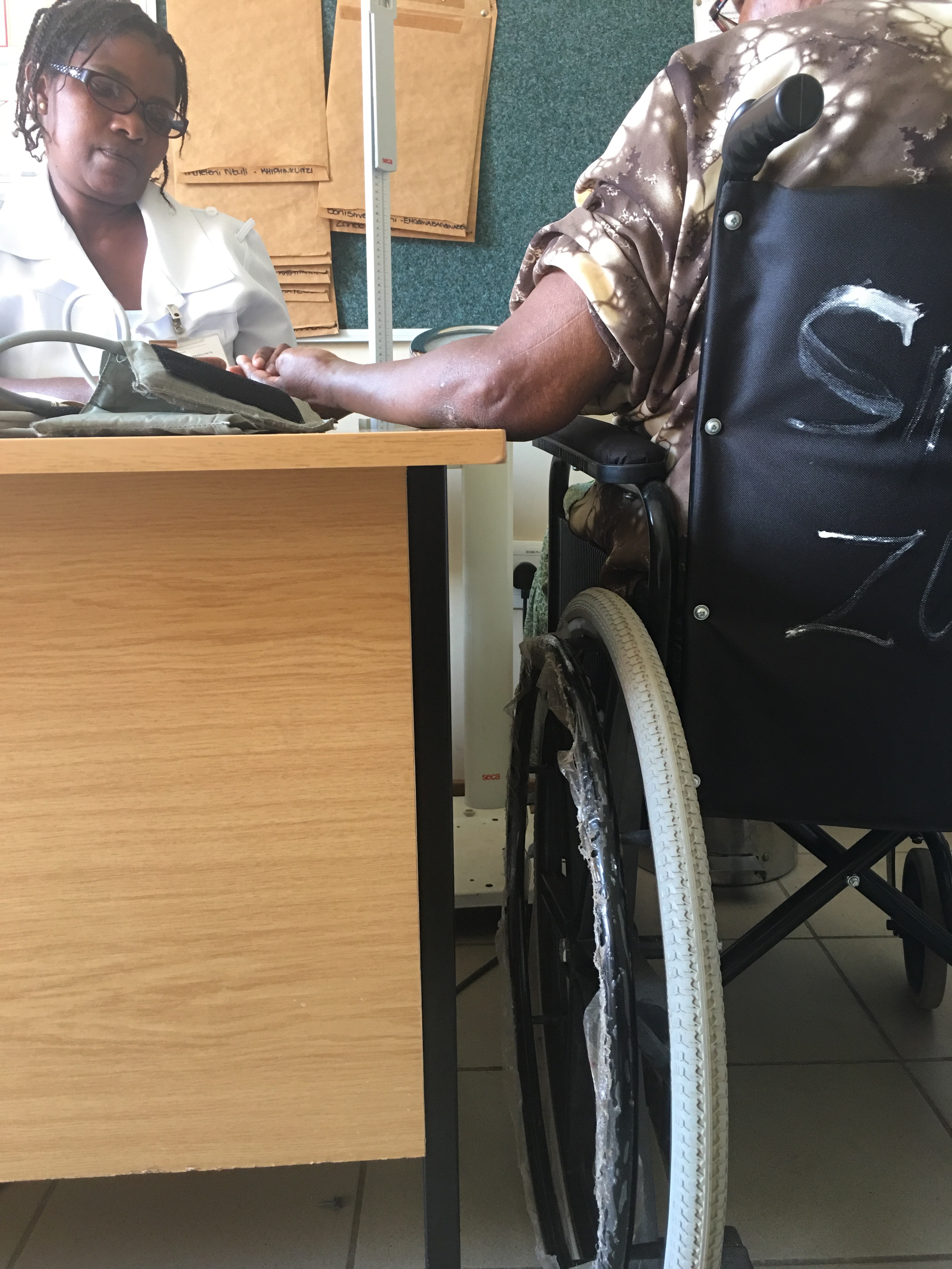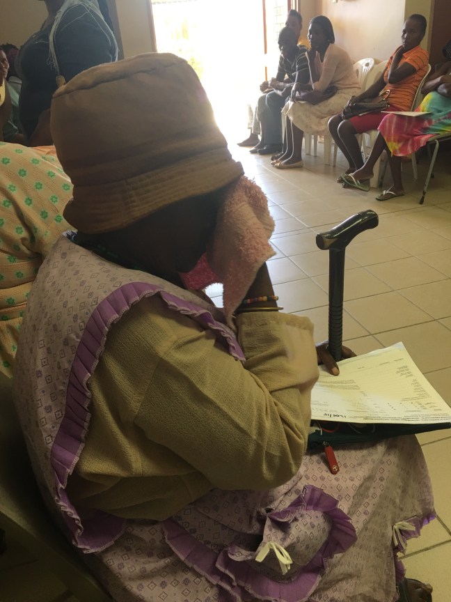 I’m surprised! I look around, and I see signs indicating who gets priority. The elderly are third on the list and I am reminded of how much the Zulu culture respects their elders. GoGo makes it into the vitals room and then we’re off to the consultation waiting room- there’s not a seat in the place, I see why the initial waiting room was so empty.