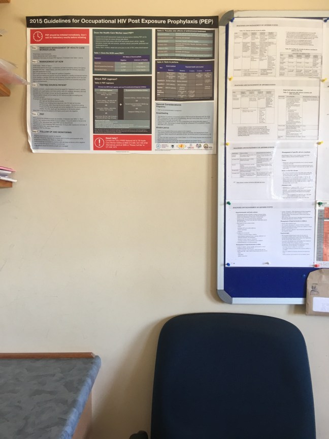 We leave the TB treatment area and then go across the hallway to the chronic medication nurse. We see this nurse every week so we’re familiar with each other. The first thing I say to this nurse is “oh you moved your desk, I like it” I can tell the she was happy I noticed, she proceeds to tell me that she’s the same way at home and we laugh about it. This visit was different, and I appreciated it- I’m thinking that my patient asked the nurse to continue to speak in English so that I can follow along. The appointments are never in English, but this one was so I’m positive that they did this just for me. My patient is also on ARVs. The professional nurse asks her how the current treatment is going and if anything needs to I change, everything is currently good and then she is prescribed a bottle of Atroiza-this is a combination pill used to treat HIV infection.