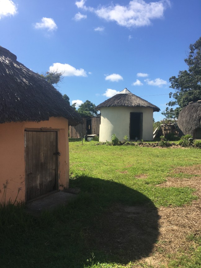 Normally, single Zulu women wear the beads pictured with nothing underneath 🙊. We learn about the family roles, the building of the huts, the making of the mats, and then head into ‘the kitchen’ to greet some of the Zulu boys using a traditional Zulu handshake.