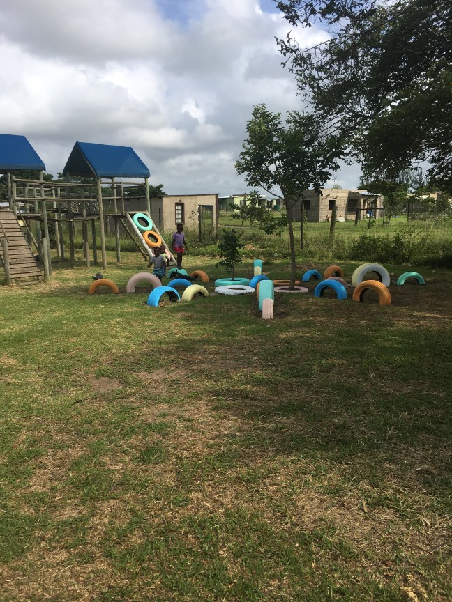 We arrive for Crèche, I’m excited for the day, the kiddos are so cute! We open the day with singing, and then we immediately start our ABC’s and 123’s. When that’s over we let the children have a little bit of free play and then soon it’s time for lunch. Some kids had cookies, and pap, for others there was rice and beans, and for one there was some chicken feet with rice. We made sure that they all drink several cups of water. As they finish one by one they put their dishes away and head to the play ground.