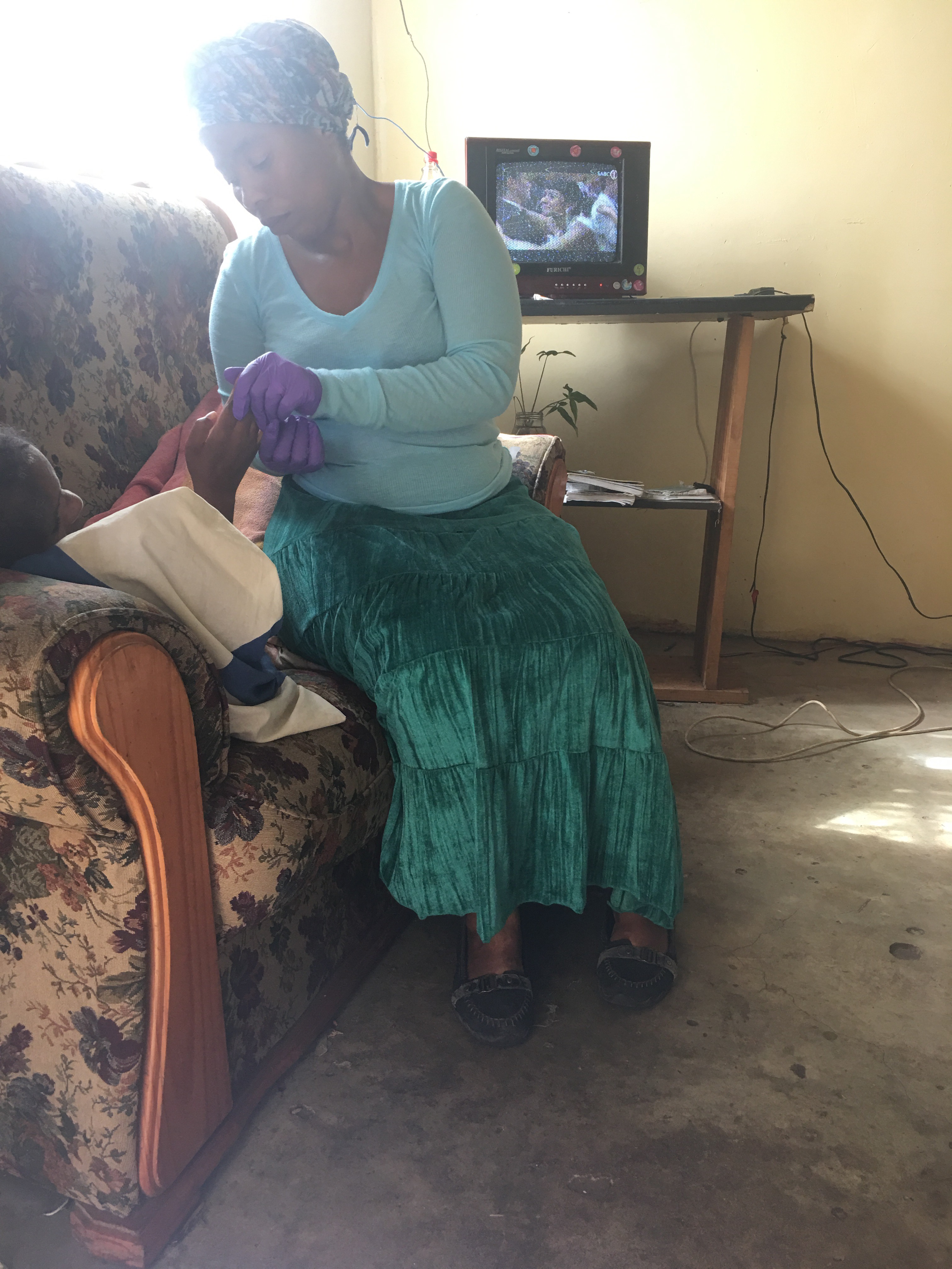 We see our first patient, she’s a sweet GoGo since I have my hair wrapped she starts speaking to me in isiZulu, she laughs when I tell her that I don’t speak Zulu lol. I told her that my hair warapped fooled her and we laugh, I’m not sure if she understood me but we laugh again anyway.