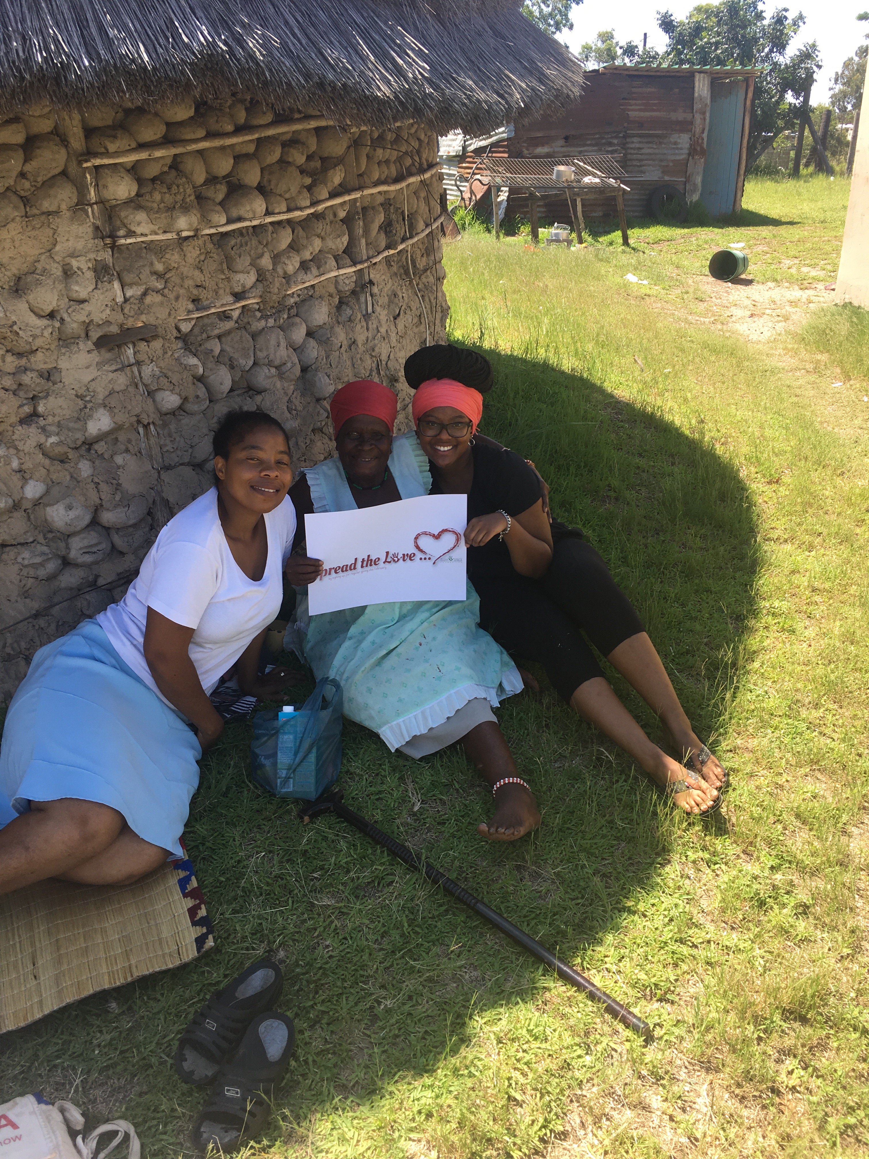 We arrive at the house at exactly 9am, we all take off our shoes before entering the room the past loved one was last in, our eyes are looking towards the ground, Claudy and Barbara each carry a bag of food parcel we’re offering, and I carry the 10kg bag of Aunt Carolines rice. We put the food donation near the middle of the room and Nok starts a song, all of the Zulu ladies and family members sing along and we listen along, some of us are sitting on a mat on the floor and some of us are sitting in the available chairs. After a song is song, Nok leads us in prayer then shares words of kindness with the family, still we all sit as still as we possible can with our eyes to the ground. When Nok finishes, the family then offers a thanks and when the exchange is over. Nok translates and then Kim says a few words herself and Nok translates for the family.